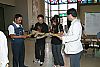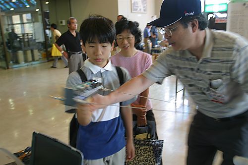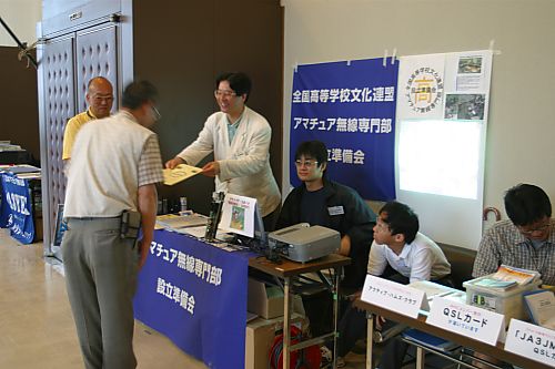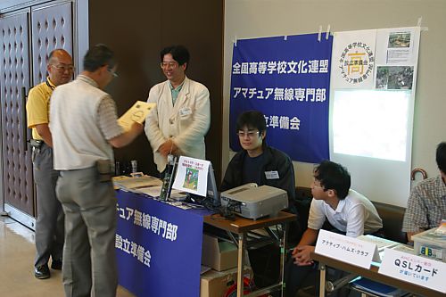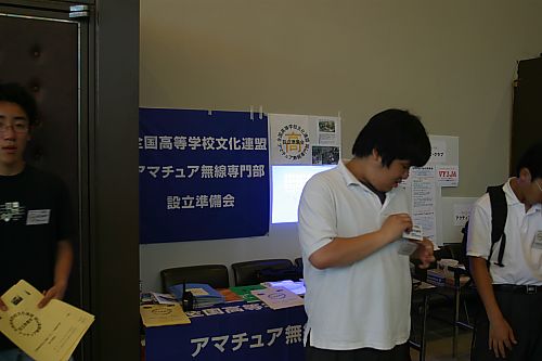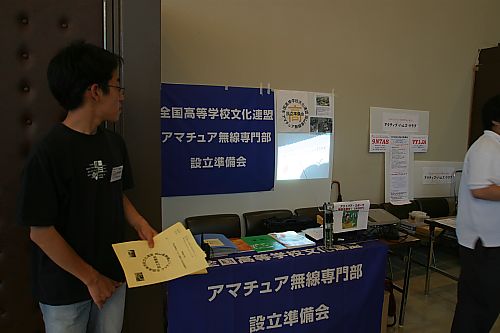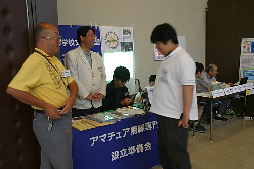 2003年6月14日(土)・15日(日) 大阪府池田市の池田市民文化会館にて、「関西ハムの祭典」が開催され、我々も出展しました。 これらの写真は、石谷が6月15日(日)に撮影したものです。 今回、奈良育英中・高校の菊一好史氏が、ブース関係の一切を担当してくださり、 土・日とも、奈良育英高校の生徒さんが、パンフ配布を手伝ってくれました。 また、15日(日)には、兵庫県立尼崎工業高校の後河内聖一氏、そして生徒さん、 さらには卒業生さんも参加してパンフ配布を手伝ってくれました。 14日(土)は石谷は私用で参加できませんでしたが、JARL原会長が直々にブースを訪ねられたそうです。 また、15日(日)は、スタンダードのアマチュア無線担当の方がみえ、WIRES-IIをはじめ、我々に大きく 支援したいとのお話をいただきました。 さらに、FCZ研究所の寺子屋シリーズキットの通信販売代行をしている「アマチュア無線応援団 Caribration」 の方から、我々にと、支援のお話をいただきました。 そして、名刺交換も多くの方とすることができ、「新しい方」との、横のつながりをもつことができました。 ブースには、親子連れの方をはじめ、多くの方に来ていただくことができました。 みなさん、ARDF競技用受信機には、見入っていました。 お子さんに、夢中になって説明するお父さんもいて、非常に楽しい雰囲気でした。 また、ブースでは、菊一氏がビデオテープから作った我々の「紹介ビデオデータ」をパソコンを通して プロジェクタで写し続けました。ビデオテープと違って巻き戻すことをしないので非常にFBでした。 やはり、若い人達の活動は、目に留まるのでしょう。 みなさん、見入っては声をかけてくださり「自分も学生の頃・・・」と話し始める方が多くいました。 今回、2校の生徒さんたちががんばってくれたおかげで、パンフは約500枚ほど配布することができ、 「3エリア」を中心に、我々の「設立準備会」の存在を知ってもらうことができたようです。 また、JARL総会での我々の発言(質問)を知っている人も多く、みなさん、「がんばってください。」と 声をかけてくださいました。 ブースに足を運んでいただいた皆様に、心より感謝申し上げます。 今後とも、よろしくお願い申し上げます。 |