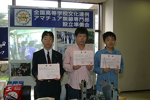 2004年5月22日(土)・23日(日) 大阪府池田市の池田市民文化会館にて、「関西ハムの祭典」が開催され、我々も出展しました。 これらの写真は、石谷が両日に撮影したものです。 今回、奈良育英中・高校の菊一好史氏と兵庫県立尼崎工業高校の後河内聖一氏が、ブース関係の一切を担当してくださり、両日とも、それぞれの生徒さんが、パンフ配布を手伝ってくれました。 そして、今回、アイコム株式会社さんの御厚意により、看板等の支援をいただきました。 この場を借りて御礼申し上げます。 今回もまた、多くの方と名刺交換することができ、「新しい方」との、横のつながりをもつことができました。 ブースには、親子連れの方をはじめ、多くの方に来ていただくことができました。 みなさん、ARDF競技用受信機には、見入っていました。 お子さんに、夢中になって説明するお父さんもいて、非常に楽しい雰囲気でした。 また、ブースでは、今年も菊一氏がビデオテープから作った我々の「紹介ビデオデータ」をパソコンを通してプロジェクタで写し続けました。ビデオテープと違って巻き戻すことをしないので非常にFBでした。 やはり、若い人達の活動は、目に留まるのでしょう。 みなさん、見入っては声をかけてくださり「自分も学生の頃・・・」と話し始める方が多くいたのは、昨年同様でした。 ブースに足を運んでいただいた皆様に、心より感謝申し上げます。 今後とも、よろしくお願い申し上げます。 <以下、パンフ配布に協力してくれた生徒たちの感想です。> ・関ハムで、自分たちのブースでチラシを配ったり、記帳してもらうのが大変だったけれど、それよりも、FOXハンティングで使った受信機について聞かれた時がとっても困りました。 説明ができないのもそうでしたが、その質問内容も分かっていない状態で、どうしたらいいのか分からなかったです。 私は、今後少しでも説明できるようにしたいなぁと思いました。 ・チラシを配るイベントは、とにかくたくさんの人々に配っていましたが、なかなか受け取ってもらえない人が多くて、全部配り終えるのにずいぶん走り回ってしんどかったです。 ・標的を探してそこらを走り回るのが楽しくて、本当に遊んでいるみたいでした。\(^^)/ 本当に「祭り」という感じで、とてもにぎやかで、とても楽しい時間でした。(^o^)v ・チラシを配っている時に、気持ち良く受け取って話を聞いてくれる人がいれば、そうでない人がいるから残念に思う。 自分は、今回初めてだったが、他の高校の人たちと仲良くなれたり、ラジオの製作ができたことは楽しかった。 ・電通部に入って初めての賞状だったので、結構緊張しました。 FOXハンティングで5人中3位でしたので、うれしいやら悲しいやらよく分からない気持ちでした。 もっと参加者が増えてくれれば、やりがいがもっと上がるだろうと思いました。 関HAMでの活動としては、自分的解釈により、自分と同じ興味を持ったFOXハンティングの参加者を増やすために、チラシを配ろうと決意して、チラシ配りに励みました。 その結果、多くの人に署名をしてもらうことができて、とても嬉しかったです。 苦手または嫌いなことを克服するのも大切かも知れないけれど、前向きに考えた結果、自分の興味を少しでも引かれることがあった時、少しでも可能だと思ったことをチャレンジすると、思った以上に良い成果がでることが今までにありました。 今回のような経験を生かして、残り約2年間の学校生活と、2つの部活動、約1年間の生徒会活動をバランスよく両立するために、普段の生活からしっかりすると、自分にとってプラスになるのだということを、再確認することができて、とても良い経験になったと思います。 ・初めての関西HAMの祭典に参加しました。 最初は「どんなことをするのかな?」と、考えていました。 それで、実際にラジオ製作を体験して「なつかしいなぁー」というのが最初に発したひと言でした。 午後からはチラシ配りをしました。 初めてチラシ配りをしたので、最初はなかなか慣れませんでした。 でも、だんだんとコツがつかめてきて、60分ぐらいで終わりました。(最初にもらったチラシが少なかったのかな?) ・ 朝、集合場所に着いた時に誰も来ていなくて少しあせりました。 しばらくして先生が来たので、先生と二人で現地まで行って待っていると、先輩たちも来たので安心しました。 関HAMでは、奈良育英高校の先輩とも知り合い、みんなといっしょにフリーマーケットに行ったり、FOXハンティングと言う、このクラブに入っていないと経験できないようなことも色々とできて良かったです。 チラシ配りはとても大変で、最初から最後まで緊張しっぱなしでした。 でも、来年も、もう一度行きたいと思いました。 |
