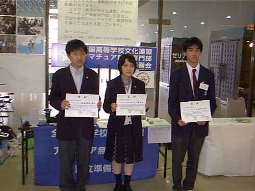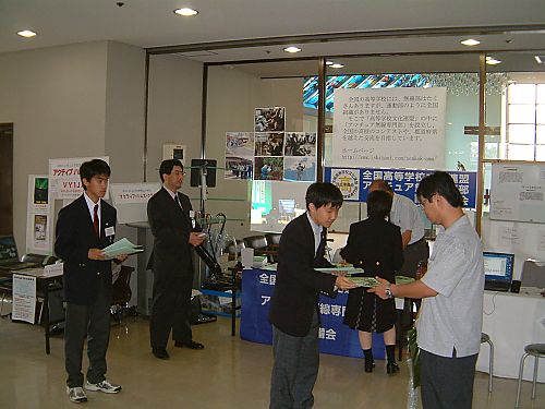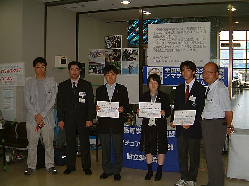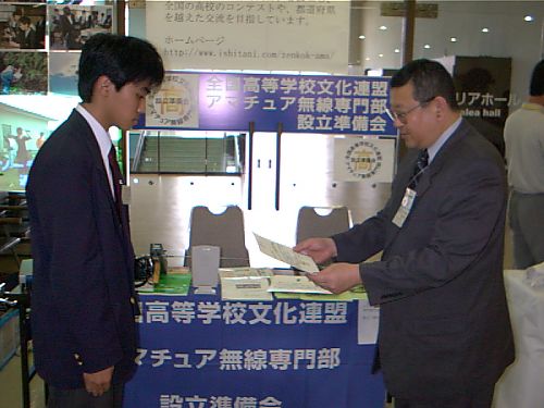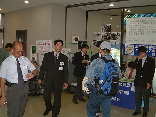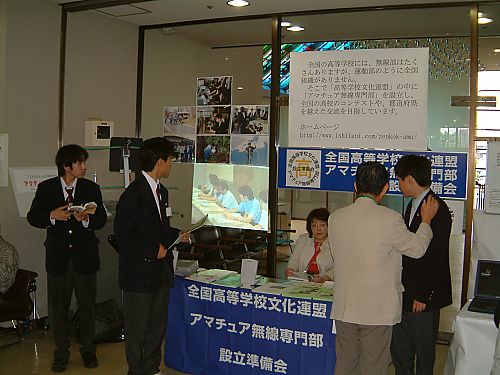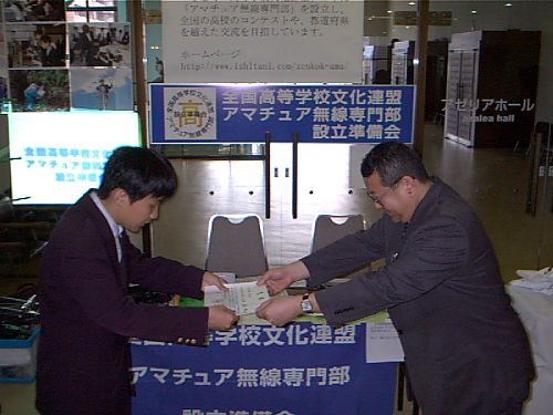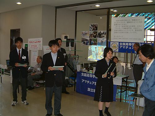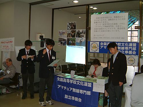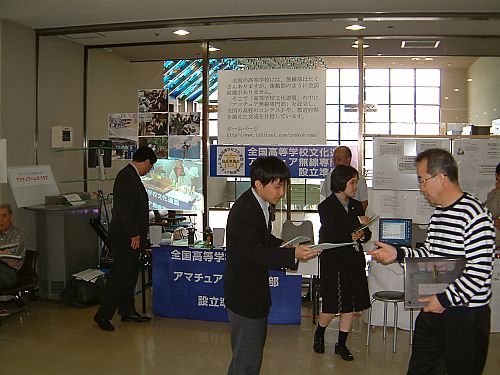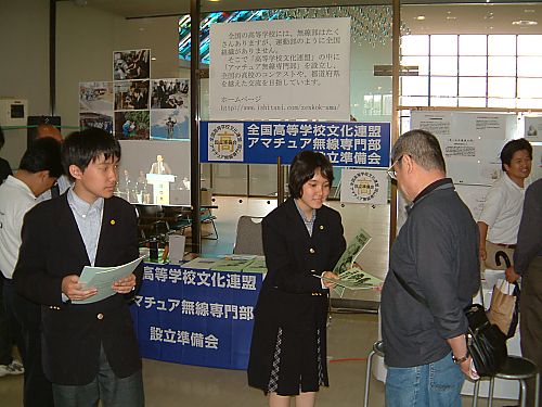 2005年5月21日(土)・22日(日) 大阪府池田市の池田市民文化会館にて、「関西ハムの祭典」が開催され、今年も我々は、出展しました。 主催者による関ハムのページは、こちら。 http://www.jarl.gr.jp/kanham/ さて、今回、兵庫県立尼崎工業高校の後河内聖一氏が中心になって取り仕切ってくださいました。 尚、初日、修学旅行の引率で参加できなかった奈良育英中・高校の菊一好史氏も2日目から全面的に参加してくださいました。 また、それぞれの生徒さんが、パンフ配布を手伝ってくれました。 初日が94部、二日目が148部、計246部、もらっていただけました。 そして、今回も、アイコム株式会社さんの御厚意により、看板等の支援をいただきました。 この場を借りて御礼申し上げます。 また、ブースでは、今年も菊一氏が作られた我々の「紹介ビデオデータ」をパソコンを通してプロジェクタで写し続けました。 ビデオテープと違って巻き戻すことがなく、また菊一氏の学校の女子生徒さんのナレーションがついていましたので、非常にFBでした。 やはり、若い人達の活動は、目に留まるのでしょう。 みなさん、見入っては声をかけてくださり「自分も学生の頃・・・」と話し始める方が多くいたのは、昨年同様でした。 ブースには、親子連れの方をはじめ、多くの方に来ていただくことができました。 ブースに足を運んでいただいた皆様に、心より感謝申し上げます。 今回もまた、多くの方と名刺交換することができ、「新しい方」との、横のつながりをもつことができました。 ほんとうに、ありがとうございました。 今後とも、よろしくお願い申し上げます。 <以下、パンフ配布に協力してくれた生徒たちの感想です。> ・チラシを配るのは緊張しましたが、受け取ってもらったときは、うれしかったです。 奈良育英高校の人たちと仲良くなれたし、よい経験になったと思います。 ・関ハムでは、チラシ配りが大変でした。 タイミングが合わなかったり、同じ人に2回渡したりもしました。 ラジオ製作は、半田も使わなかったので楽にできました。 あんな簡単な構造で、選局もできたのには驚きました。 FOXハンティングでは、また、一人ではつかまえることができませんでした。 電波の強いところで、ねばっていたり、FOXの真上ににいたりしていました。 |