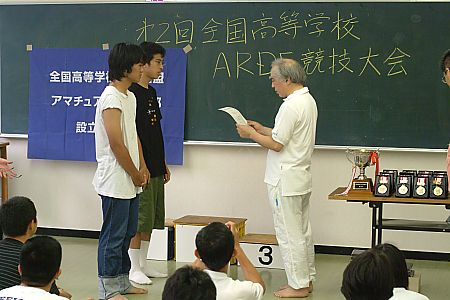 ◆第2回全国高等学校ARDF競技大会の開催について 2年前のプレ大会から3回目の開催となる「第2回全国高校大会」ですが、昨年を大きく上回る約2倍の参加選手数となりました。国内大会ではJARL主催の全日本大会に次ぐ規模の大会です。「JARLの全日本大会は国体、準備会の全国高校大会はインターハイ」のスローガンが早くも現実のものとなってきました。 昨年までの一泊二日ですと遠方からの学校は競技終了後では帰れないことから二泊三日で計画しました。本来は休館日である少年自然の家ですが阿賀野市教育委員会からの後援をいただくことで特別に利用させていただきました。 主管とて、昨年同様JARL新潟県支部をお願いし、開催地の地域クラブの全面協力で 大会運営されました。 今回の大会の目玉としましては、上位入賞者が9月に開催される国内初の国際大会「第6回IARU第3地域(Reg.3)ARDF選手権大会」(新潟県阿賀野市)に日本代表チームとして出場できることとなりました。 ◆分科会について 当初3.5M帯受信機製作会・練習会のみの予定でしたが、その準備ができない参加校が多くありましたので急遽分科会形式としました。 @3.5M帯受信機製作会・練習会 国内大会の主流は144M帯なのですが、近年急速に広がってきています3.5M帯の練習会です。受信機は岡山のJA4WSH田中先生がボランティアで共同購入して下さっている中国製受信機キットPJ−80を主に利用しました。これは感度に若干の難があるものの公式大会にも使用できるだけの性能を持ちながら、1000円程という安価なキットです。 その製作は簡単な半田付けながら数時間はかかるので参加者には事前に組み立てて参加してもらい、ここでは最終調整と受信トラブルのケアを行いました。岡山から田中先生に参加していただき担当していただきました。 製作の完了した生徒は屋外にて実際の練習会です。3個のTXを使い1km四方程のエリアで行いました。各自チェックカードを持ち、タイムは自己申告によるものでの順次スタートします。初心者には受信機の使い方やそのノウハウの指導も行いました。 A沢登り 昨年の交流会で大好評だった企画で、今回も2日目の交流会に予定していました。が、夏季講習等の予定から交流会の前に帰らなければならぬ学校があり、ぜひ行いって欲しいという要望から1日目にも設定しました。 当日は猛暑でしたので渓流の冷たい流れが昨年同様に大好評でした。(ただアブに悩まされた生徒が多くいました) B「8Nφ3ARDF」記念運用 9月に開催される国内初の国際大会「第6回IARU第3地域(Reg.3)ARDF選手権大会」(新潟県阿賀野市)の特別記念局「8Nφ3ARDF」の運用ブースを設けました。昨年から数字入の5文字までのサフィックスが認めらることとなり、このようなコールサインとなりました。JARL新潟県支部が運営しているものをこの大会期間にあわせて設置していただきました。 残念ながらこの時間での参加者はいませんでしたが、自由時間に新潟県支部長の指導をいただきHFの運用に挑戦する生徒がいました。 ◆講習会「144M帯競技説明」 初心者の参加も多かったので、受信機の使い方からARDF競技のルール、そして実際の大会の流れやそのノウハウ等を説明しました。特にルールについては今年度大幅な改訂があり、その部分に焦点を絞っての講習でした。 本当はもう少し時間を延ばし細かい説明を行いたいところでしたが、冷房のない蒸し暑い環境での説明会で、特に遠方から参加の生徒には体力的に負担であることからごく簡単な最低限の説明のみで終わってしまいました。 ◆ARDF競技大会について 昨年までの国内大会ではFM電波形式が主流でしたが、JARLでも今年度より国際大会に合わせたAM電波形式に切り替えていくということとなり10月の全日本大会(石川県)もAMで開催となっています。初心者には少し難しいとは思いましたが今大会もAM形式で開催しました。またローカルルールとして5個全てのTXを探索対象としました。できるだけ多くのTXを探索させようとのねらいです。 そして今回は従来の紙パンチでなく、電子パンチ「SIシステム」を使いまいた。これはICチップの組み込まれたカードを指にはめ、TXで専用のBOXに差し込むと記録されるというものでした。国内での使用は今大会が3回目でしたがこれからのの大会で多く使われるようになっていきます。 昨年より初心者が多いことから比較的起伏の少ない簡単な設定としたのですが、逆にそれが裏目となり、選手を苦しめてしまいました。猛暑による「暑さ」です。起伏が少ないということは必然的に平地主体のエリアとなり、木陰等ないほとんど直射日光下での競技となってしまいました。2カ所の給水ポイントを設けたのですが競技中盤には準備したドリンクもなくなり急遽買い出しということとなりました。 また予想以上の参加選手数から一回にスタートする選手数が多くなってしまい、団子状態となりやすいこととなったのが大きな反省点でした。 結果詳細は別紙ご参照下さい。 ◆交流会「