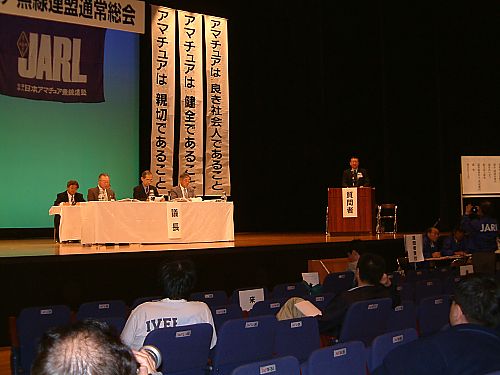 2005年5月29日(日) 宮城県仙台市の「仙台サンプラザホール」にて、「2005JARL総会」が開催され、昨年に引き続き、JARLに対する要望を発言しました。 JARLの、「2005JARL総会」ページは、こちら。 http://www.jarl.or.jp/Japanese/4_jarl/4-3_soukai/47-sendai/47-sendai.htm さて、何よりも先に・・・ 「委任状」6票、ありがとうございました。 どなたからいただいたかはわからないのですが、とにかく、ありがとうございました。 この場を借りて御礼申し上げます。 次に写真ですが、岩手、黒沢尻工の伊藤さんにご協力をいただきました。 この場を借りて御礼申し上げます。 今回、なんだか、時間が押していて、旗を広げる余裕がありませんでした。 すみません。 さて、とりあえず「テープ起こし」いや、「ICレコーダー起こし」をやりました。 自分の声を聞くって言うのは、なんとも、やなものですね。 以下、発言内容です。 ------------------------------------------------ どうも、こんにちは。JI1TJJ石谷でございます。 よろしくお願い致します。 高等学校の教員でして、3年ほど前より、全国高等学校文化連盟のアマチュア無線専門部の設立をしようということでがんばってやっております。 本日はですね。時間の関係もございますので、3点ほど要望ということで申し上げたいということで考えております。 議案の6ページ、7ページ、8ページのあたりですが、かなりJARLの方にもご努力いただきまして、高校生、中学生、小学生に対する支援というものをかなり本格化してきていただいております。それに関しては一定の評価という形をさせていただきたいところでございます。 が、もう一歩進んでですね。さらに要望というものをしたいわけです。 まずWebの方では理事会のことが出ておりましたが、青少年の活性化問題を考える委員会ですね。これをまあ早急に設置していただきまして、検討を開始していただきたい。という事を考えております。まあ、とにかく、だんだんと学校のクラブが減ってきてましてですね、無線はやっているんだけれども部活はないと。そういう生徒たちをピックアップして我々やっているわけですけれども。かなりやはりたいへんです。やはり、JARLのおちからを借りてですね、なにかこう全面的な中学生高校生のバックアップができるような体制作りをと考えていかねばならないと考えております。 ので、青少年の活性化問題を考える委員会の設置のほど、よろしくお願いいたします。 それから、8ページのところにですね、身体障害者や小中学生の団体に対する援助協力というところの一番最後の行「16年度は新たに高等学校も対象に加え、より活発に援助活動を、・・・」というようなことで書かれております。が、ですね。ここの部分なんですけども、各都道府県の高校クラブですね。地域のクラブですね。これに入って、1年以上、活動しなければならない。ところがそのクラブとして入るにはですね、クラブ規定というものがございまして、第9条の2というものがございます。「地域クラブ以外のクラブ構成員は原則として10名以上でさらにその構成員の3分の1以上が会員でなければならない」と、ここの部分がかなり苦しいんですよね。現時点としては。 各高校の部活、今、生徒数の減少に伴いまして、各校三人とか二人とか。工業高校でも10人行っているかなといったところなので、ちょっとこの規定ですと、受けられないと。というようなのが現状です。ですので、できましたら、この9条の2の撤廃、と、言いますか、見直しを考えていただきたいと考えております。 また、予算に関しまして、かなり、これあの、よくわかりませんけど・・・。細かいことはよくわかりませんけれども・・・。高校生の会費ですね、それからハムフェアの入場料、これなんかも思い切ってゼロという形にしてですね。ぜひあの、小中学生高校生は、もうとにかくタダでできるんだと。と、いうような形で・・・。アマチュア無線のおもしろさを体感したうえで18歳以降、正会員になってもらいたいというような方向でもっていくっていうのは今後の活性化になるんじゃないかな。と考えております。 以上要望でしたけれどもよろしくお願いいたします。 ------------------------------------------------ 一番最後の、 「アマチュア無線のおもしろさを体感したうえで18歳以降、正会員になってもらいたいというような方向でもっていくっていうのは今後の活性化になるんじゃないかな。」 の部分のところでは、会場から大きな拍手をいただきました。 ほんとうに、ありがたかったです。 ひとつ反省としては、文章を見てみると、冒頭のところ、 「高等学校の教員でして・・・設立をしようということでがんばってやっております。」 と、まるで私ひとりでやっているような印象の発言をしてしまったのはまずかったです。 「北海道から沖縄まで全国約130名のメンバーと」 と、来年の「熊本」では、必ず入れます。 申し訳ございませんでした。 以上、
