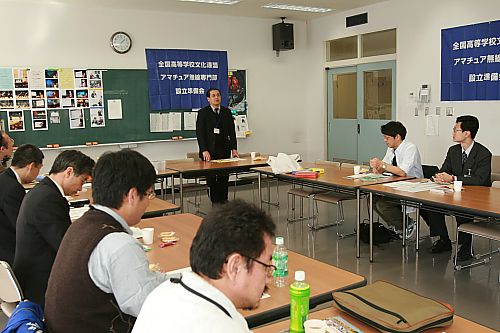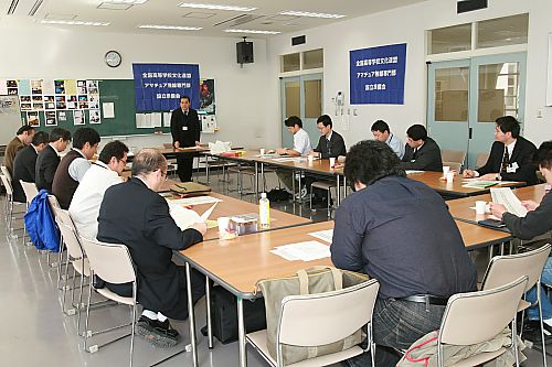 第11回全国高等学校文化連盟アマチュア無線専門部設立準備会が行われました。 以下、報告させていただきます。 ●<日 時> 2008年3月22日(土) 13:30〜17:00頃 ●<場 所> 神奈川県立神奈川総合高等学校(石谷の勤務校)の2階の会議室 ●<出席者>(敬称略) 北海道から、正村 秋田県から、齊藤 新潟県から、佐藤 茨城県から、小平 東京都から、梅田 神奈川県から、長田、平野、吉田、三村、西田、森下、望月、南、関、松川、石谷 静岡県から、岡本 兵庫県から、後河内 奈良県から、菊一 以上19名の参加がありました。 ●<自己紹介> まず、各自自己紹介をしました。 それぞれの地域での報告もあり、「点在」している生徒たちの様子も語られました。 ●<この一年間の活動報告> この一年間の活動報告をしました。 それぞれ、深く関わった方からのコメントをいただきました。