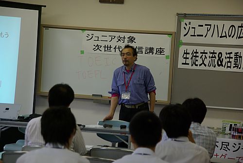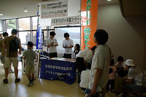 2009年7月18日(土)・19日(日) 大阪府池田市の池田市民文化会館にて、「関西ハムの祭典」が開催され、今年も我々は、出展しました。 昨年に引き続き、今年も会場の都合ということで、7月となりました。 主催者による関ハムのページは、こちら。 http://www.jarl.gr.jp/kanham/ さて、今回も、兵庫県立尼崎工業高校の前田哲治氏及び、奈良育英学園の菊一好史氏に全面的にお任せいたしました。また、それぞれの学校の生徒さんが、熱心にパンフ配布を手伝ってくれました。 そして今年も、ブースでは、今年も菊一氏が作られた我々の「紹介ビデオデータ」をパソコンを通してプロジェクタで写し続けました。非常にFBでした。 今年は写真にもありますように、展示ブースのみならず、「D−STAR講習会」「活動報告会」「じゃんけん大会」「ビンゴ大会」と盛りだくさんでした。 展示ブースや活動報告会を中心に、約30名の高校生たちが、アマチュア無線のおもしろさや現在の活動を大人達にPRしました。 また、関ハム中の7月19日(日)は、ちょうど、第20回高校コンテストの日となり、関ハム会場からも、熱心にオペレートする姿も見られました。そして、関ハム特別局の「8N3KH」と「8N3HAM」にも、本コンテストの「高校特別局」として運用を協力していただきました。この場をお借りして御礼申し上げます。 ブースでは、交代で我々のパンフレットを配り、多くの方々から、中学・高校生たちに、「がんばれよ!!」の声をかけていただきました。 ブースに来ていただいたみまさま、そして、イベントに参加していただいた皆様、ほんとうにありがとうございました。 心より、御礼申し上げます。 尚、この関ハムと夏のハムフェアに関する記事が、2009年の12月号に、取り上げていただきました。 (本誌は、P.108〜109) http://www.cqpub.co.jp/cqham/cqhamwww/2009/cq2009_12/index12.htm この場を借りて御礼申し上げます。 尚、当日の左の写真ですが、すべて、尼崎工業高校の前田哲治氏の撮影です。 ありがとうございます。(石谷) |