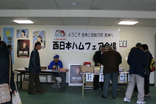 2008年3月9日(日) 「ユニバーサル造船有明事業所体育館」(熊本県玉名郡長洲町)で開催された「第8回西日本ハムフェア」に出展いたしました。 公式ページは、こちら。 http://qshu.hp.infoseek.co.jp/8nisihamu.html JARLのページでの報告は、こちら。 http://www.jarl.or.jp/Japanese/2_Joho/2009_news-3.htm (この報告ページの第8回西日本ハムフェアの写真の、中央からやや右下のところに、我々の旗が確認できます。) 当日、石谷は会場へ行けませんでしたが、福岡の井上さんのおちからにより、出展することができました。 以下、井上さんの報告です。(写真撮影も) =================================================== 西日本ハムフェアの出展報告です。 今回もいつものようにテーブル1台、イス2脚をリースで借りて展示をしました。 展示といっても、パンフ類をテーブル上に並べただけで、特別な「営業活動」はしていません。 (毎回この程度しかお手伝いできずすみません) 本校は2学期制で、ちょうど学年末考査と重なり生徒は要請できません。 筑紫野の牟田さんと2人で担当しました。 主催者の発表によれば、来場者は1350人だったそうです。 今回は写真も6枚ほど撮りましたのでご覧下さい。 福岡 祐誠高等学校 井上 JA6JSR |
