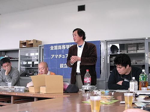 ●<この一年間の成果報告> 次に、この一年間の成果報告を行いました。 JARLへは、昨年度に引き続きおおいに感謝するとともに、さらにこれからのことを要望していくことで確認いたしました。 [成果] ・今年も関ハムでも、ハムフェア同様、生徒交流大会が実施されました。 ・今年のハムフェアでは、初めて、一般ブースとしました。これにより、物品販売が可能となりました。 また、今年は、広い会議室を借りて、全国生徒交流大会ができたいへん好評でした。 さらに、それに加え、ブースでのビンゴ大会が好評でした。 以上の報告を、CQ誌2009年12月号に掲載していただきました。 ・またJQ1YKMでの設備面に関して大きく充実することができました。 特に、D−STARに関しても、ハムフェアでの講習会をはじめ、実際に触ってみて生徒にそのおもしろさをPRできました。 ・それと同時に、JQ1YKMへの寄付物品を貸し出しすることができました。 立川六中への貸し出しに加え、5エリアの高校生への貸し出しは大きな実績と言えます。 ・また、「全国高等学校ARDF競技大会」でのすばらしい報告もあります。 詳しくは、佐藤さんからの報告、こちら(PDFファイル 約124KB)を、ごらんください。 ・また、今回、設備面の中に、はんだごてセットを昨年の10セットに加えさらに3セット購入することができました。 これにより、普通科高校をはじめ、いろいろな場所でさらに工作会を実施していくことができるようになりました。 ●<これからの活動計画> 次に、これからの活動報告ですが、おおむね、2009年度と同様に行っていくことを確認しました。 しかし、関ハムの日程が今年度も7月となり、生徒に負担とならないよう、充分配慮することなどが話されました。
