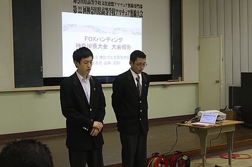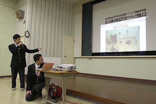 2011年12月18日(日)、神奈川県川崎市のJR南武線平間駅下車8分のところにある「神奈川県立川崎工科高等学校」において、「第22回神奈川県高等学校アマチュア無線大会」が開催され、その中で、第22回高等学校アマチュア無線コンテスト表彰式が行われました。 主催は、神奈川県の文化部の集まりである神奈川県高等学校文化連盟の中のアマチュア無線専門部です。 入賞された茨城県の高校生も参加されました。 このあと、以下の行事について生徒のみなさんから、報告をしてもらいました。 4月のALL JA+第1回FOX大会合宿報告 5月の第2回FOX大会合宿報告 7月の全国高等学校ARDF競技大会報告 8月のハムフェア出展報告・全国生徒交流大会報告 「全国高等学校文化連盟アマチュア無線専門部設立準備会」として 10月の全日本ARDF競技大会報告 11月の第3回FOX大会報告 最後、集合写真を撮って、おひらきとなりました。 尚、第22回高等学校アマチュア無線コンテストのルール及び結果発表は、以下、クリックしてください。 http://www.ishitani.com/h-test.htm |