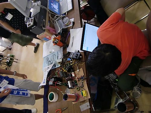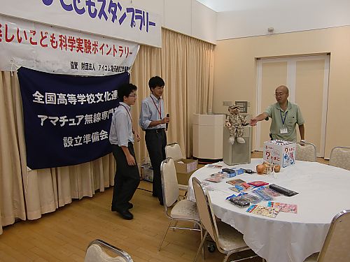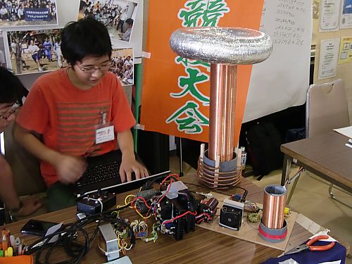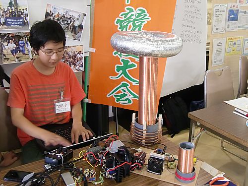 2013年7月13日(土)・14日(日) 大阪府池田市の池田市民文化会館にて、「関西ハムの祭典」が開催され、今年も我々は、出展しました。 今年も、関西のジュニアハムたちが、パンフの配布など、関ハムのお手伝いをして好評を得ました。 そして関ハム初日の、2013年7月13日(土)、今年は、関ハム会場3階の「イベントスペース」にて、「ジュニアハムの集い」が開催されました。 今年も写真にもありますように、まず各校の活動報告から始まり、小さい子たちも含めた「じゃんけん大会」があり、例年のようにたいへん盛り上がりました。 またブースでは、交代で我々のパンフレットを配り、多くの方々から、中学・高校生たちに、「がんばれよ!!」の声をかけていただきました。 さて、今年のブースでの大きな目玉は、高槻中学3年生の生徒さんが作った「ステラコイル」でした。 彼の説明によれば、「テスラコイルはニコラテスラが発明した高電圧を発生させる空芯高周波変圧器です。たくさん巻かれた2次コイルとトロイドと呼ばれる容量球で構成され2次のLC共振回路を共振させることで高電圧を得ています。基本的には共振インバーターみたいな感じです。またインタラプタ信号に可聴域のパルス信号を入れることによりパルス信号の通りの音を放電で演奏することができます。」とのことで、「ジュニアハムの集い」や「ブース」で、いろいろな曲の演奏を披露していました。 また、今後は、「テスラコイルを使用した無線送電,高出力インバーターの自作などをやってみたいと思っています。」とのことで、今後の彼の活躍が期待されます。 当日、ブースに来ていただいたみまさま、ほんとうにありがとうございました。 ◆関ハム 本年度参加校 兵庫県 県立尼崎工業高校 奈良県 奈良育英学園中学・高校 大阪府 高槻中学・高校 和歌山県 県立紀北工業高校 京都府 府立田辺高校 主催者による関ハムのページは、こちら。 http://www.jarl.gr.jp/kanham/ ----------------------------------------------------------------------------- 尚、この関ハムと夏のハムフェアに関する記事が、2013年の11月号に、取り上げていただきました。 (本誌は、P.162〜163) http://www.cqpub.co.jp/cqham/cqhamwww/2013/cq2013_11/index11.htm この場を借りて御礼申し上げます。 |